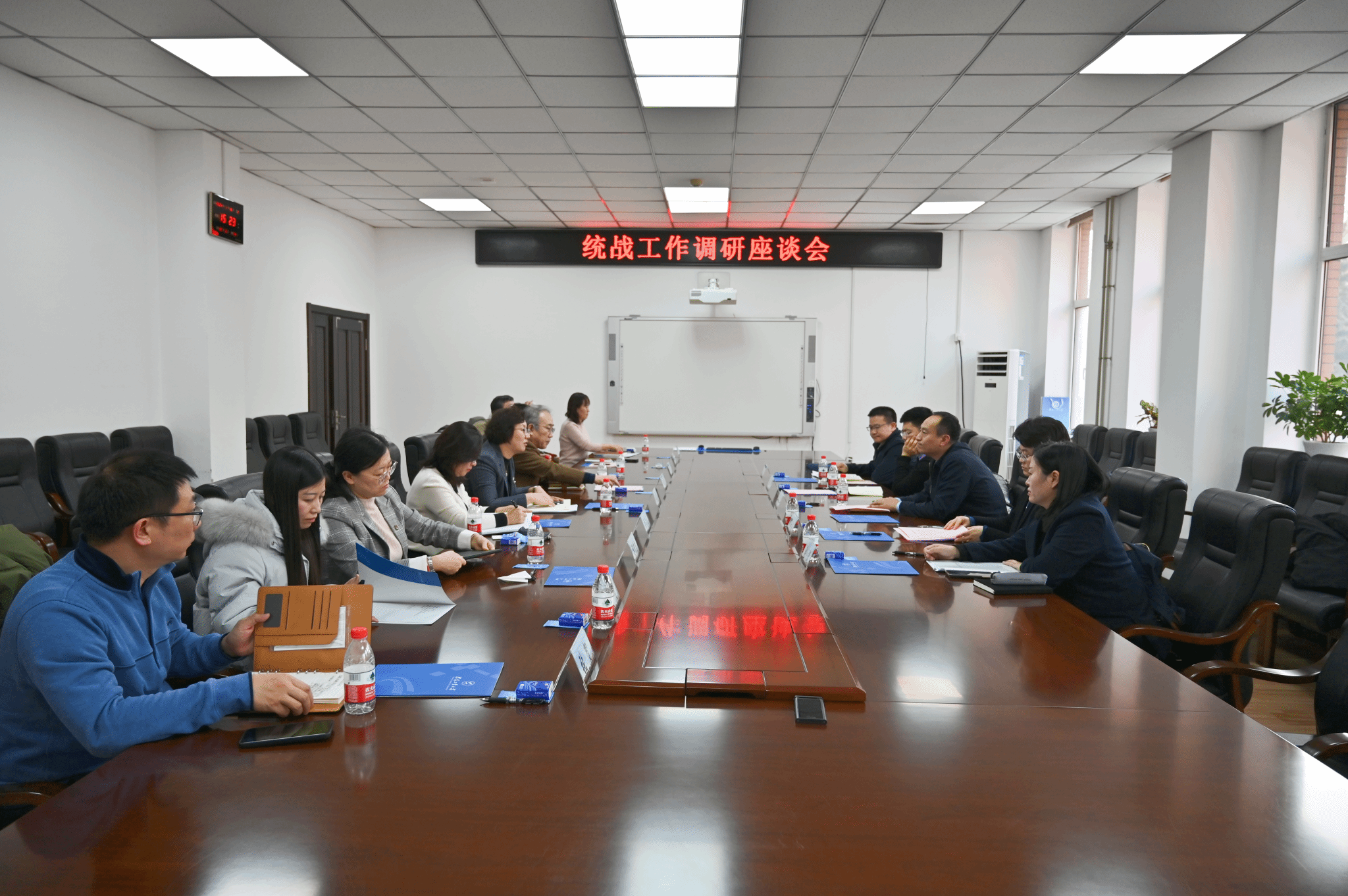 调研组与部分校领导、相关职能部门负责人、二级学院党组织书记、统战团体负责人及党外代表人士等进行访谈交流,现场查阅了相关材料。