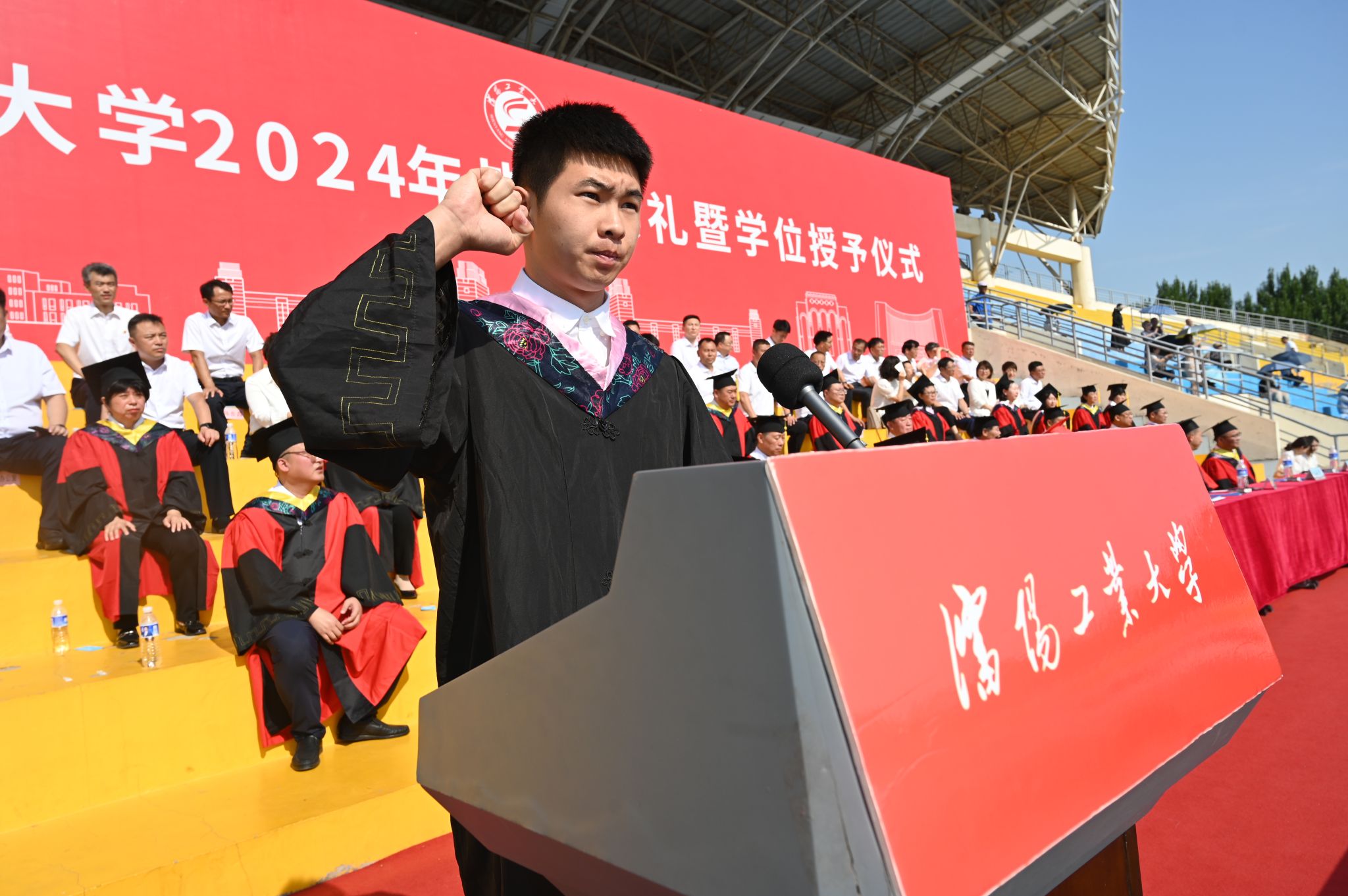最后,全体毕业生庄严宣誓,表达了奋发作为、追求卓越,为中国式现代化挺膺担当的坚定决心。