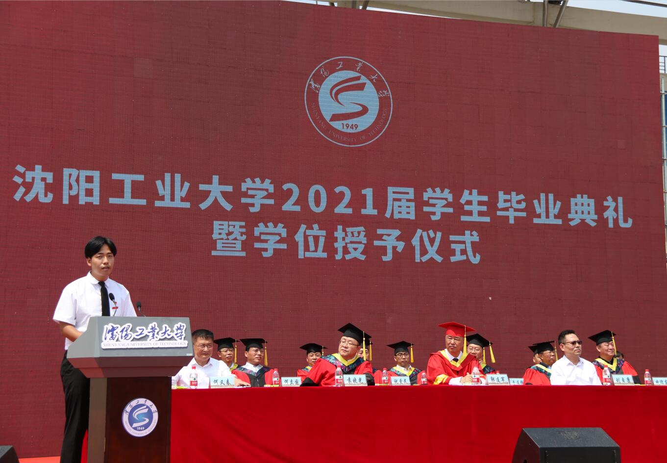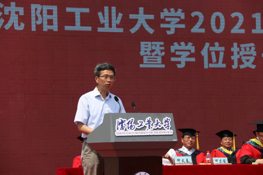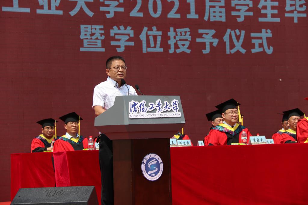 在典礼上,副校长袁晓光宣读学校2021届本科生、研究生毕业授位决定文件及2021届辽宁省优秀毕业生表奖文件。全体校领导、校友代表为辽宁省优秀毕业生代表颁奖。