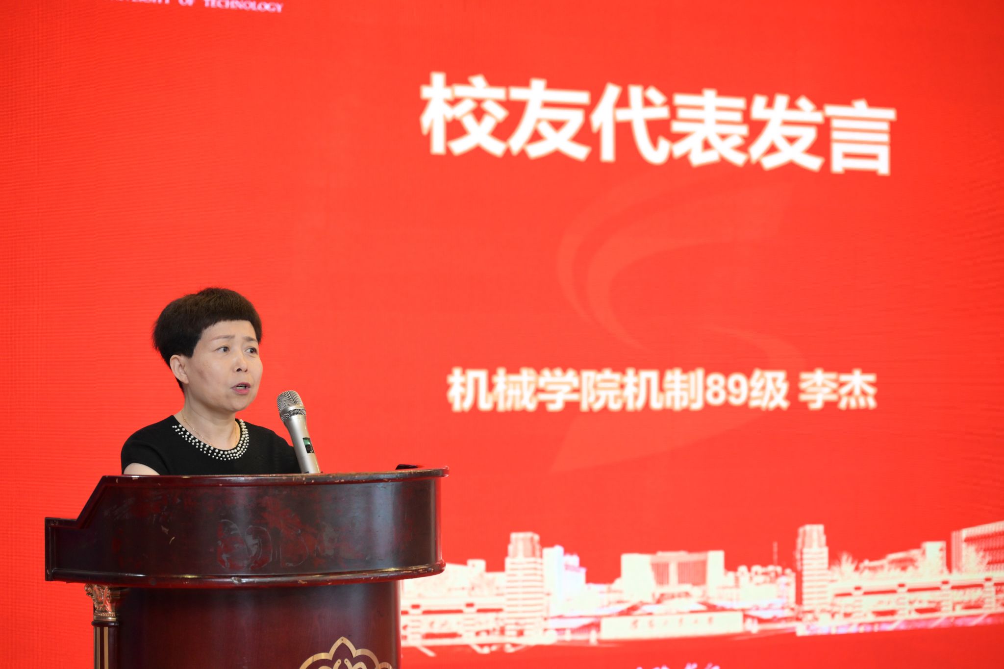 贾玉明书记代表学校向广大大连校友表示亲切的问候,向大连校友会理事会换届大会的成功举办表示热烈祝贺。他首先向大连校友通报了学校近年来在教学科研、人才培养等方面所取得的标志性成果以及学校第十三次党代会目标任务的落实情况,着重介绍了学校75周年校庆筹备情况,并向广大在连校友发出参加75周年校庆活动的诚挚邀请。