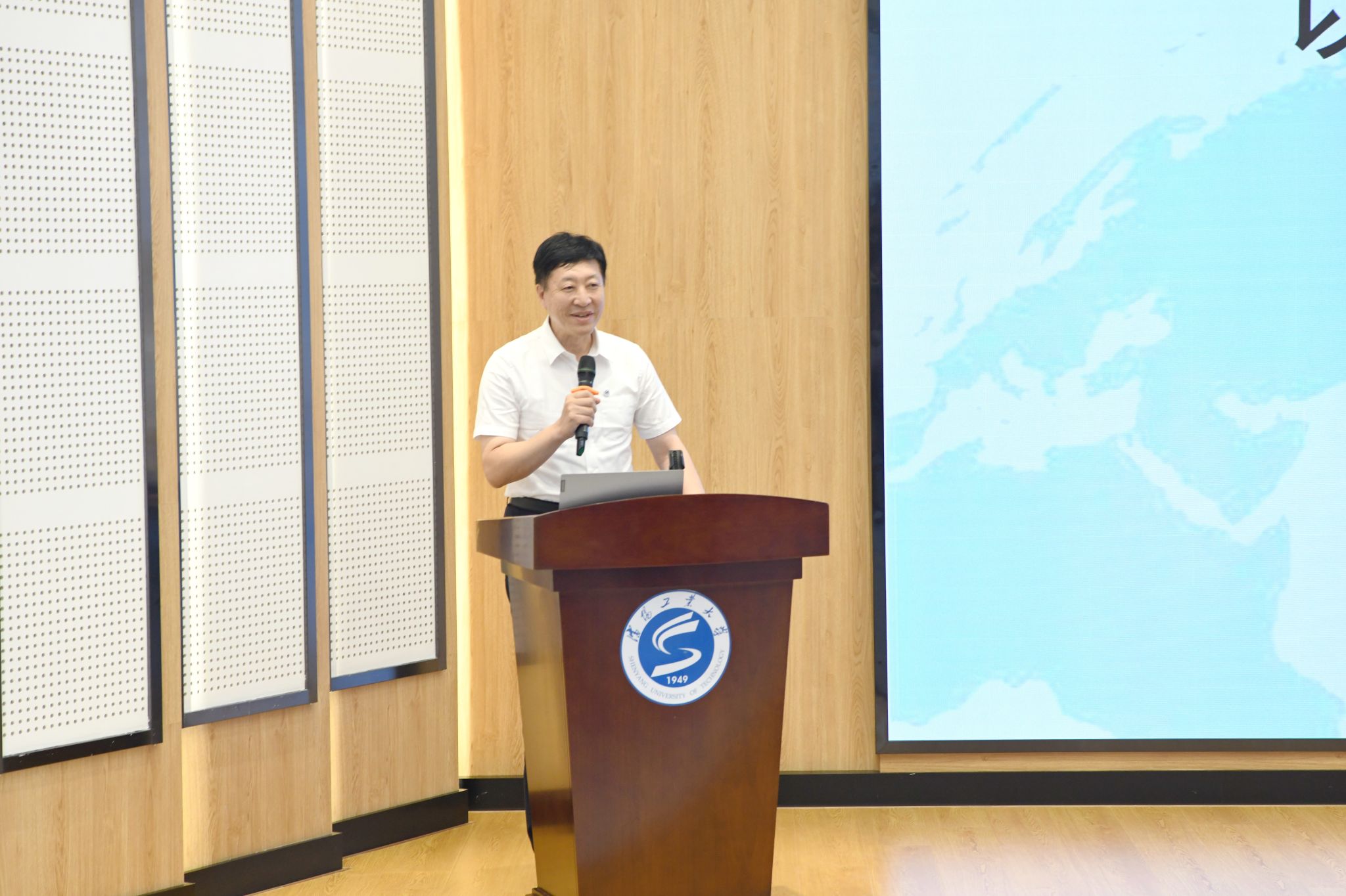 中国电力工程有限公司高级顾问、教授级高级工程师、我校校友沈光伟以“助力企业‘走出去’为辽宁经济发展培育‘增量’”为题,从我国涉外产业与国家经济发展现状出发,结合辽宁省、沈阳市对外经济合作情况,提出了装备制造企业向投融建营一体化转型、学校助力实体企业“走出去”的思路和方法。