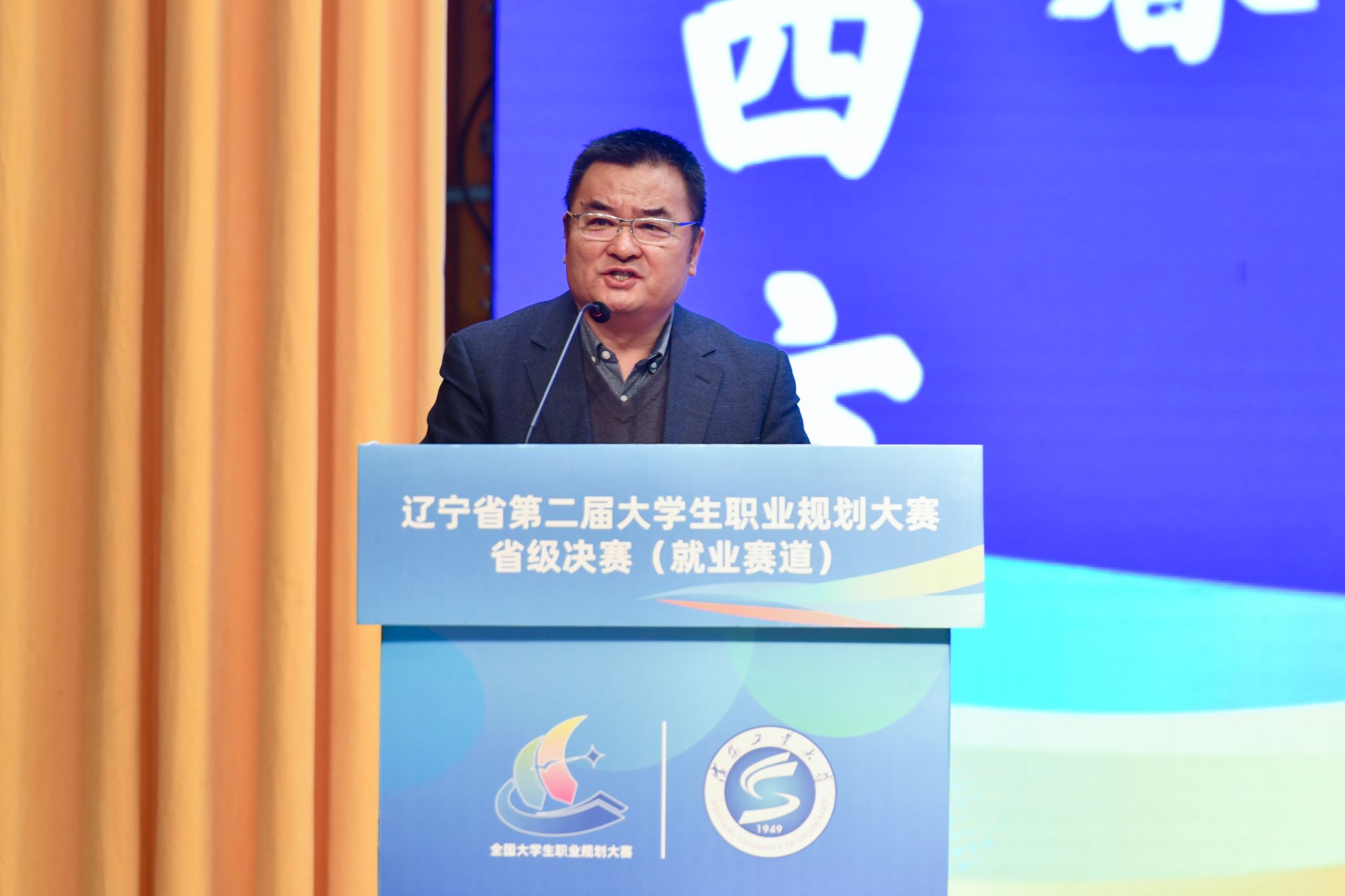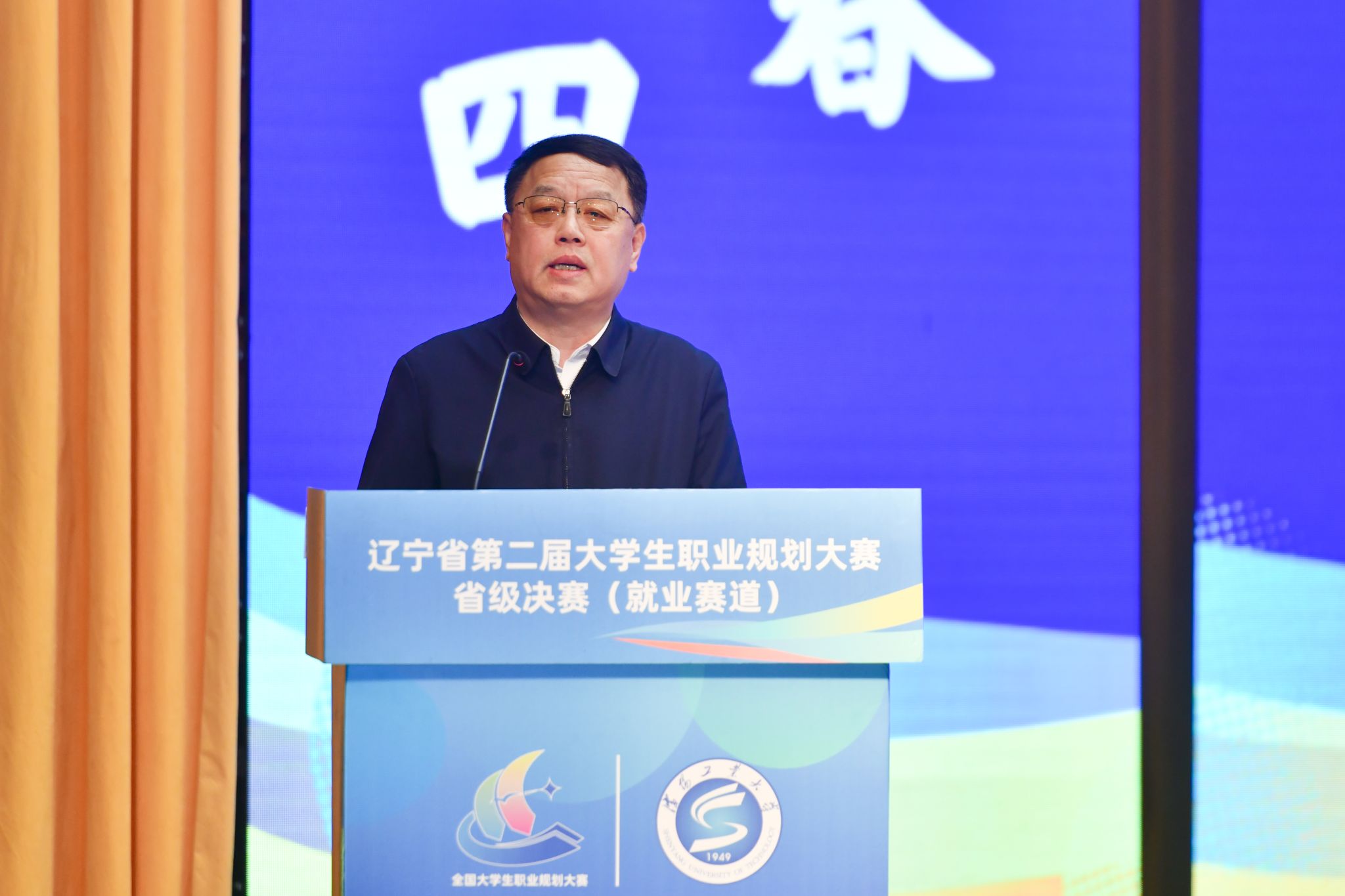贾玉明在致辞中对各位领导、嘉宾、评委以及参赛师生的到来表示诚挚的欢迎与感谢,并介绍了学校“四箭齐发”做好学生职业规划和就业工作的情况。他表示,学校始终将人才培养和就业工作视为头等大事,推进实施“育人固本”工程,做深做实育人长效机制,获评全国首批深化创新创业教育改革示范校,入选中组部工程硕博士培养改革专项试点高校,在推动学生高质量就业方面成效显著。希望以大赛为契机,加强与各兄弟单位的交流与合作,共同推进大学生职业规划教育迈向新的高度,为辽宁振兴发展培养更多的人才。
